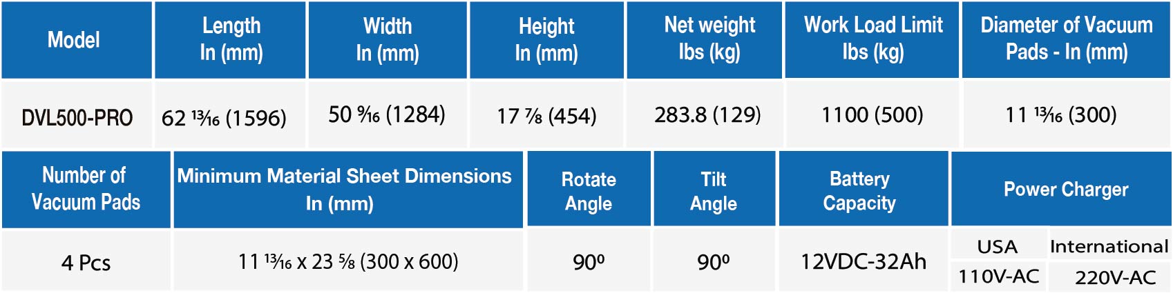 Technical Specifications of Ausavina Vacuum Lifter Pro