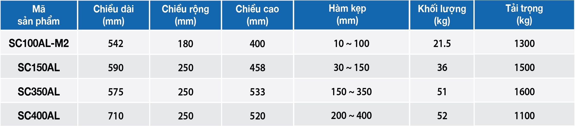Dòng sản phẩm này hiện có 4 mã khác nhau là SC150AL, SC350AL, SC400AL và SC100AL-M2, cho phép người dùng lựa chọn loại kẹp phù hợp với từng độ dày tấm đá.