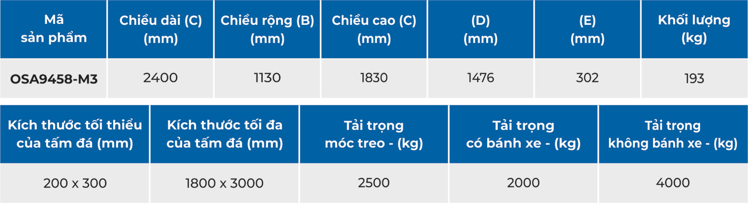Thông số kỹ thuật của Khung vận chuyển tấm vật liệu Ausavina