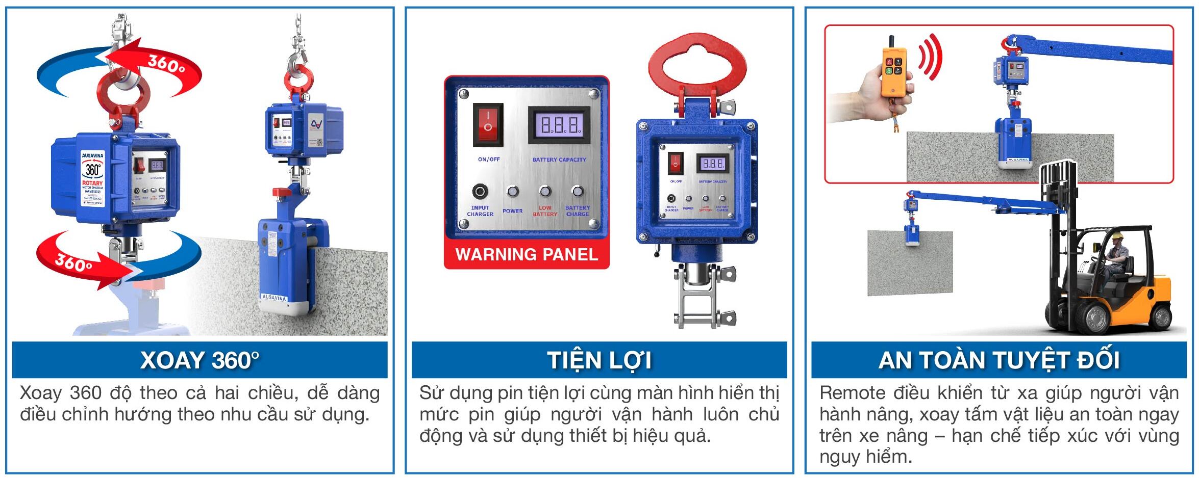 Ma Ní Xoay Điều Khiển Từ Xa Ausavina được thiết kế để kết hợp với kẹp đá, kẹp kính Ausavina, xe nâng hoặc pa lăng, hỗ trợ xoay và di chuyển các tấm vật liệu theo cả hai chiều, mang lại sự linh hoạt tối đa trong thao tác.