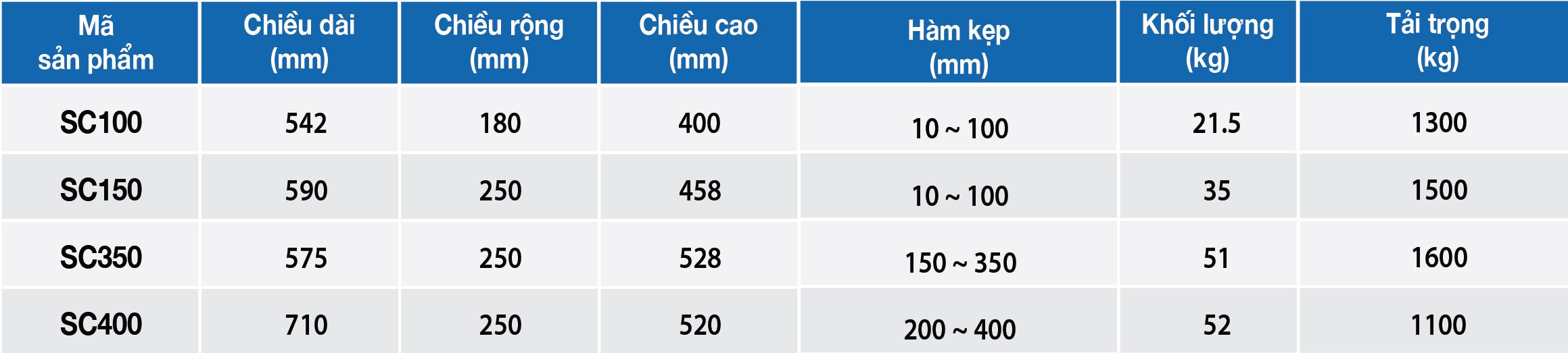 Chúng tôi phát triển dòng Thiết Bị Kẹp Tấm Đá Loại Xếp với nhiều mã sản phẩm như SC100, SC150, SC350 và SC400, mang đến lựa chọn phong phú nhằm đáp ứng các nhu cầu khác nhau của khách hàng và cung cấp giải pháp xử lý tấm đá linh hoạt.