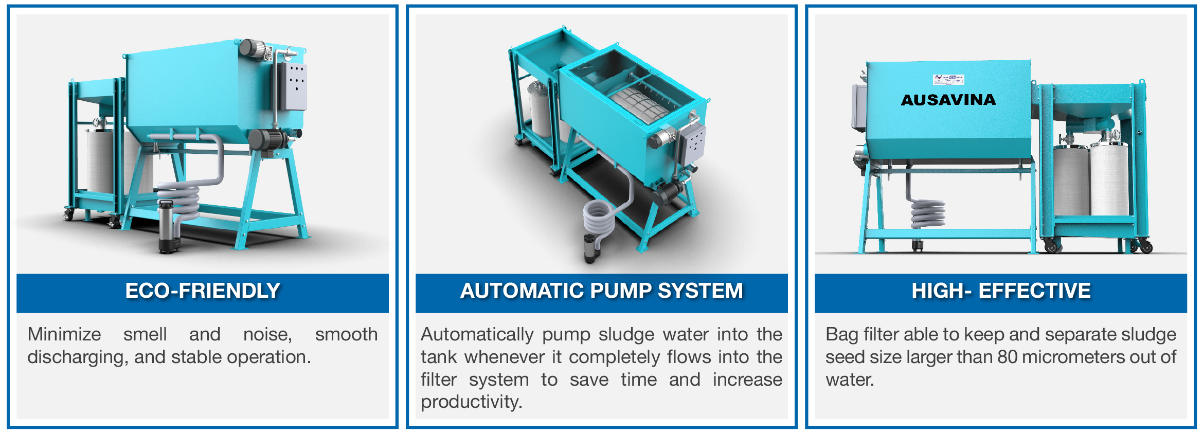 • The bag filter keeps and separates sludge seed sizes larger than 80 micrometers out of water.